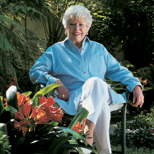 Image: Claire Trevor seated in the backyard of her home in Orange County.